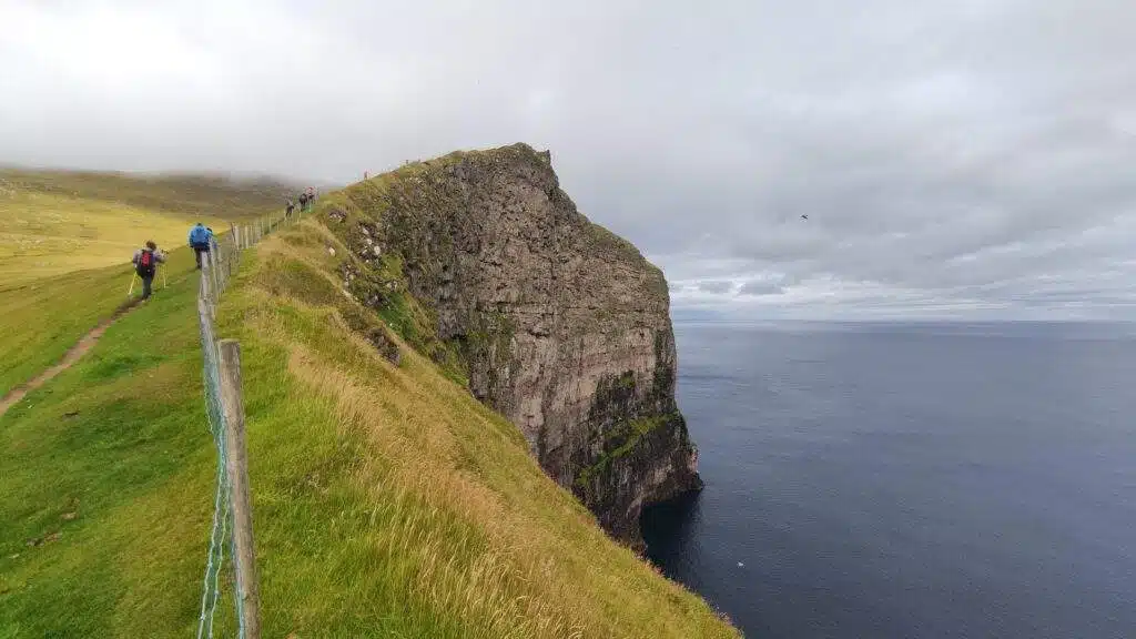 Ésta es una ruta ampliada del paseo por los alrededores de Gjógv (fuerza empinada y de 3-4 km). Es una de las muchas rutas que van y vuelven por casi el mismo sitio, pero vale la pena hacerla. Junto con Nolsoy, esta es nuestra ruta favorita de este listado de los mejores treks de las Islas Feroe. En este caso, es espectacular gracias a las vistas dramáticas al inicio del trek, la sensación de libertad durante el resto del trek y los acantilados frente a la isleta de Búgvin.